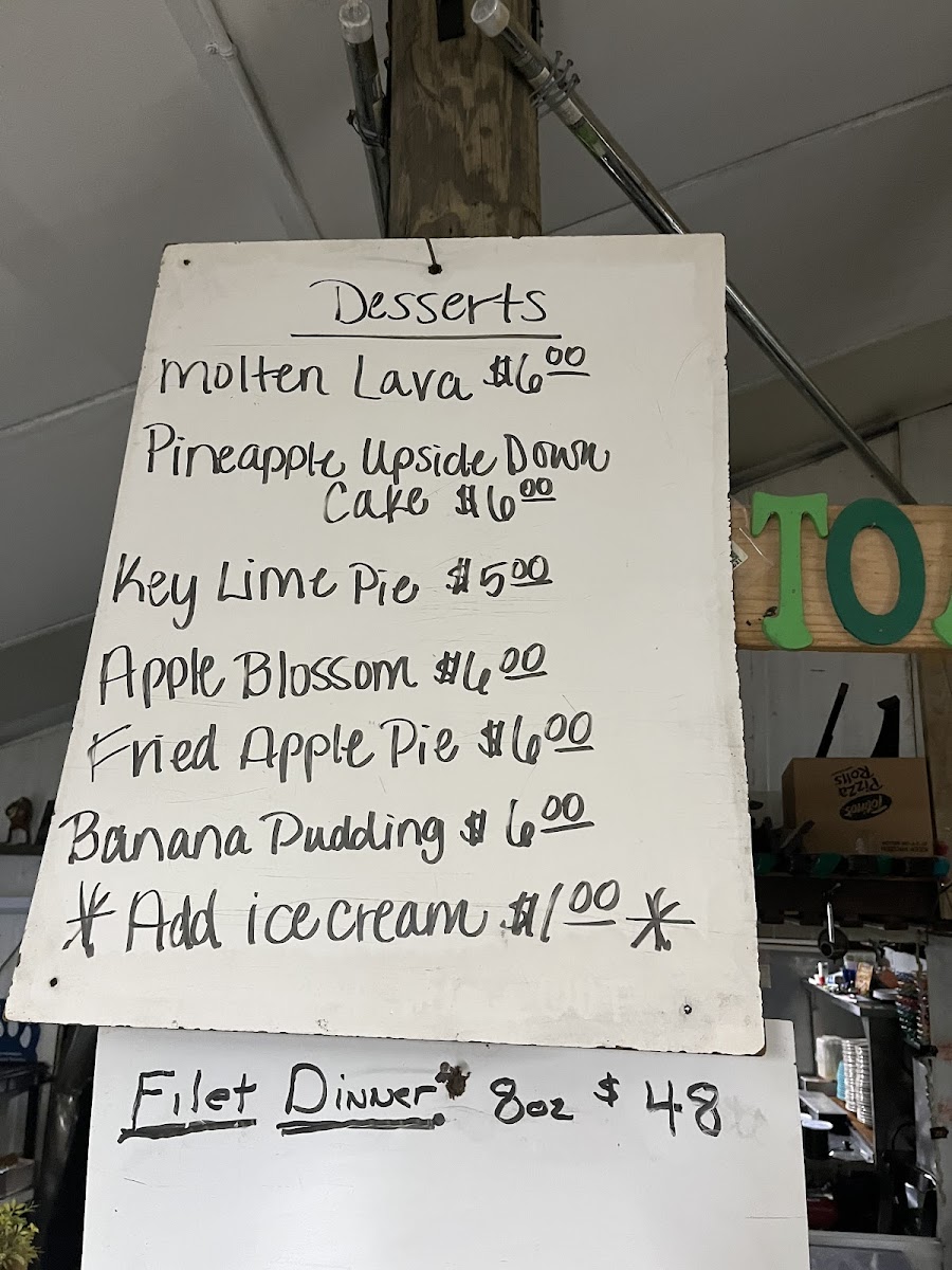 The menu features a variety of classic appetizers like crispy fried green tomatoes and fried pickles—perfect for sharing while enjoying the peaceful outdoor views or live music on warmer evenings. Steaks are at the heart of the experience here, prepared to order and seasoned simply to highlight their natural flavors, making them an ideal choice for those seeking a satisfying main course. Alongside, sides such as loaded baked potatoes and fresh dinner salads offer familiar, no-frills accompaniments that complement the main dishes without complicating the meal.